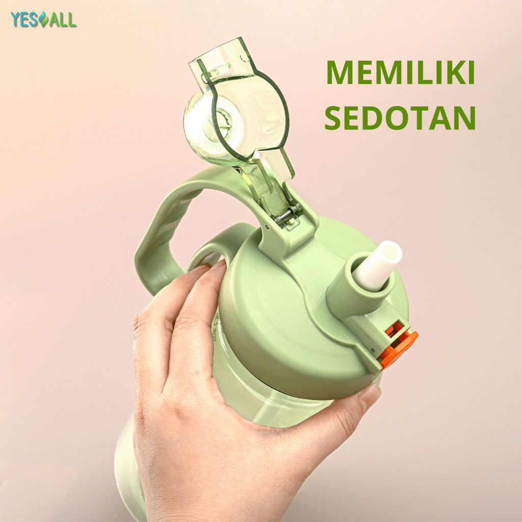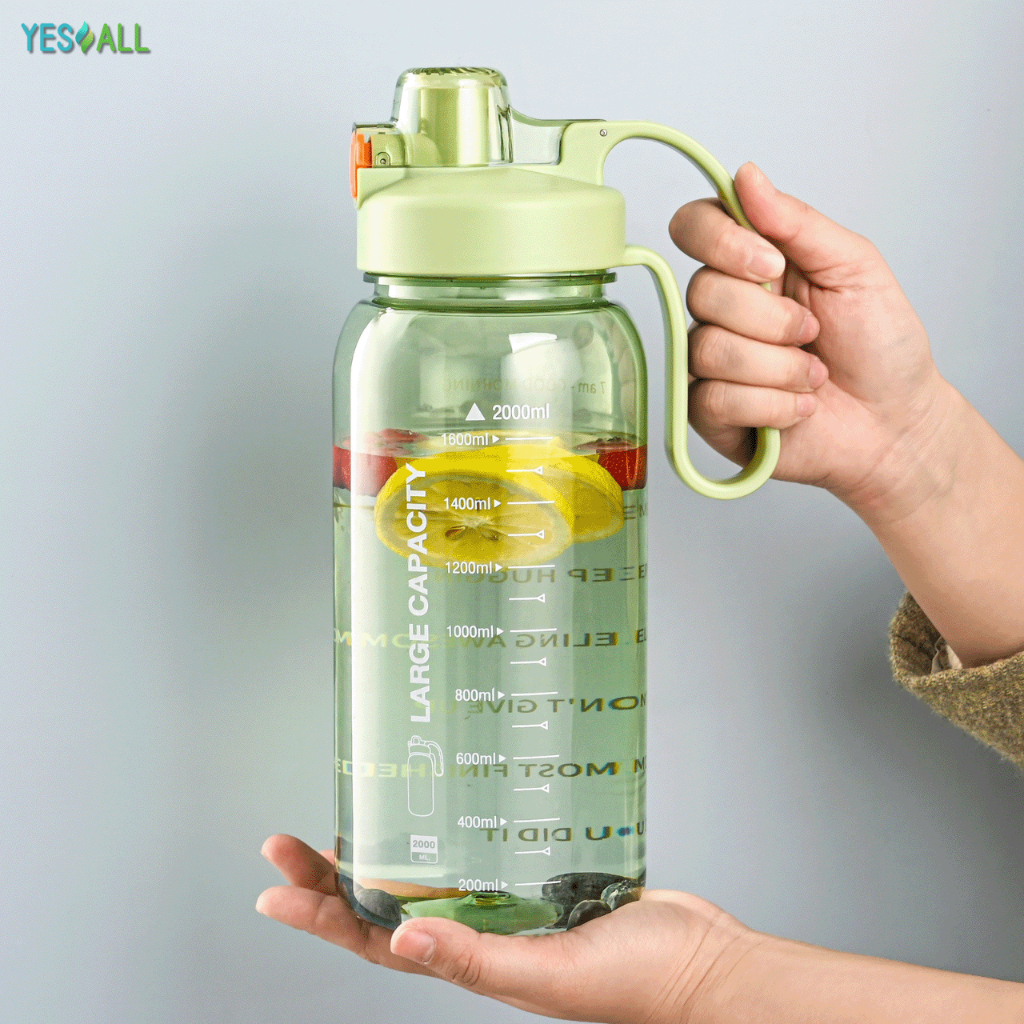 YESALL 2000ml Botol Minum Transparan - Water Bottle Air Olahraga Warna Infuse Infuser Warna Penanda Waktu Motivasi 2L SH003