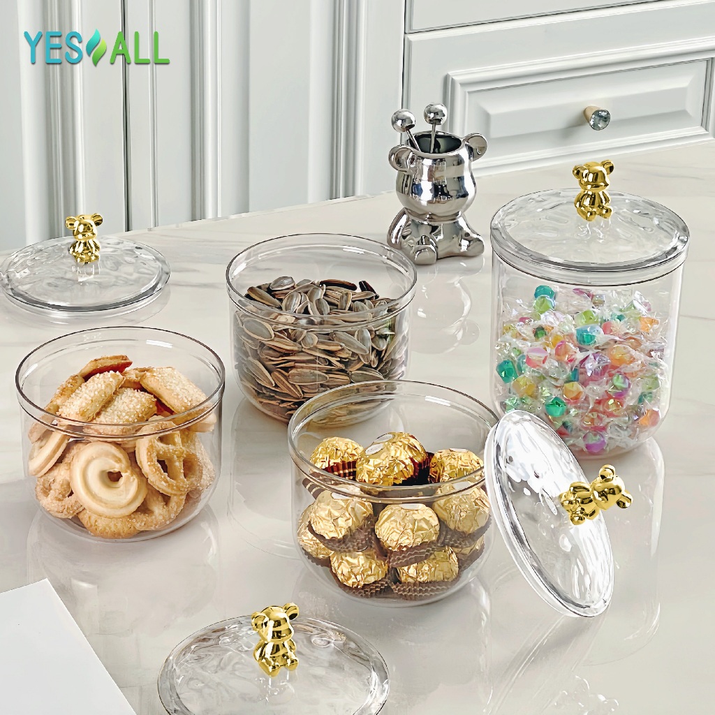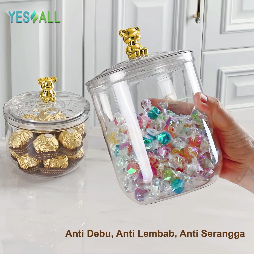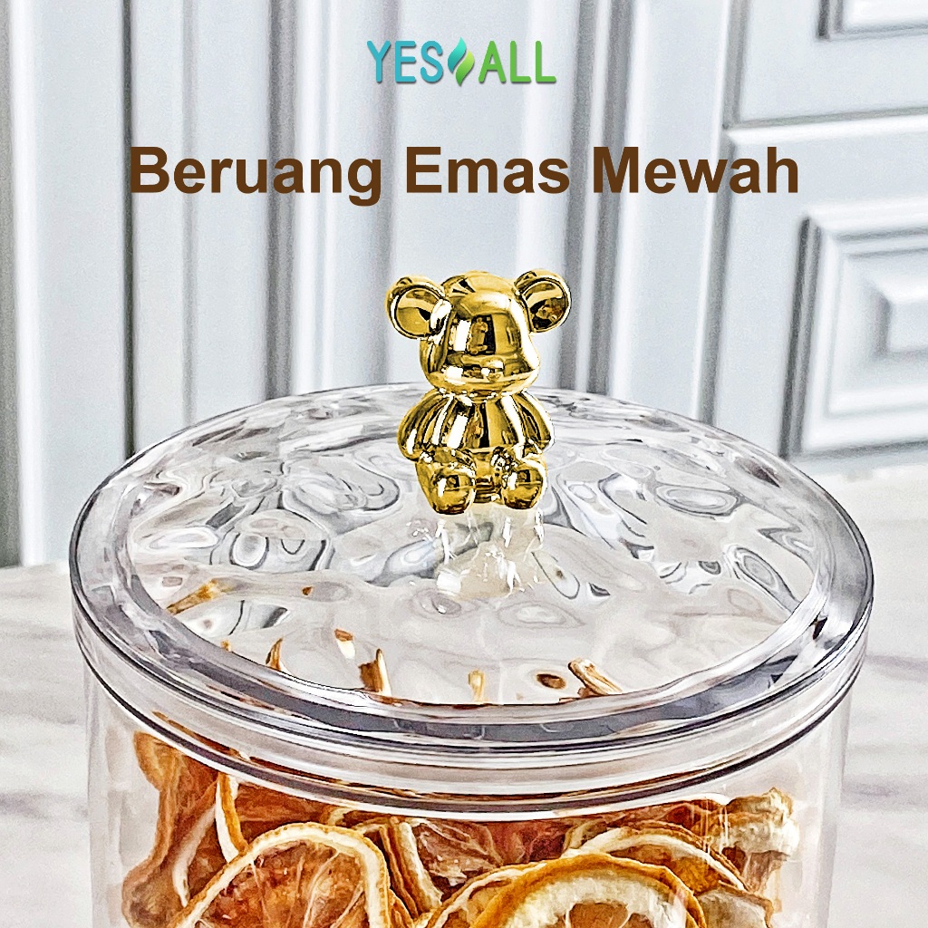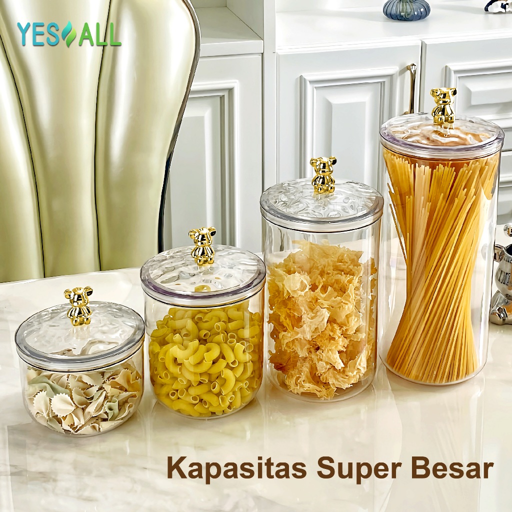 YESALL Toples Beruang Serbaguna Plastik Bulat Transparan Aesthetic - Snack Storage Makanan Tempat Bumbu - Food Jar