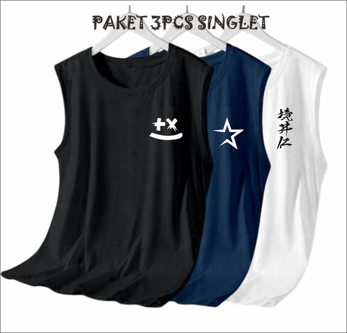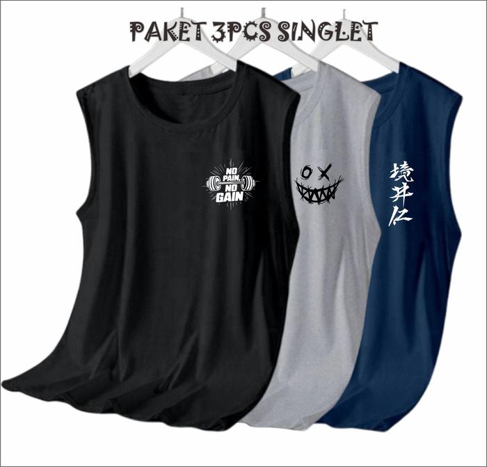 PAKET HEMAT KAOS SINGLET LEKBONG PRIA MOTIF 3 PCS 50RIBUAN / KAOS LEKBONG COWOK MURAH - HITAM , ABU TUA , PUTIH, M