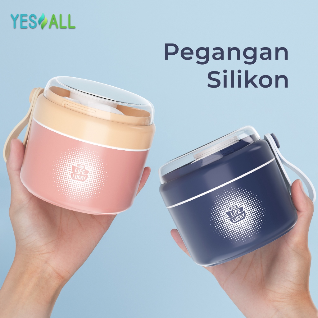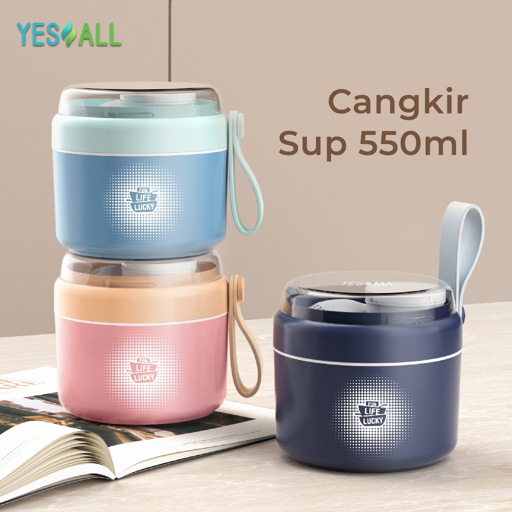 YESALL Cangkir Sup Bekal Portable 550ml - Food Grade PP Microwave Safe Anti Tumpah Bonus Sendok + Wadah Saus dengan Tempat Penyimpanan