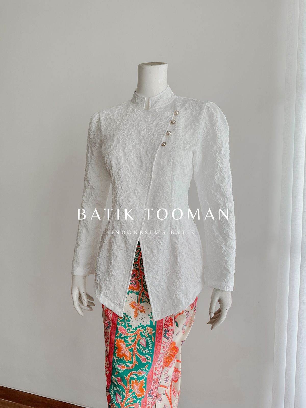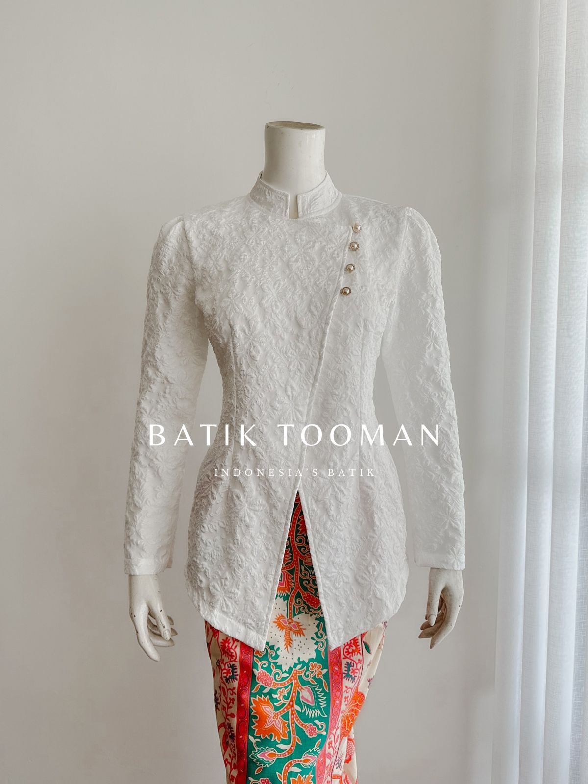 DUMILAH (Hanya Atasan) Kebaya Janggan Wanita Modern Warna Broken White Berkancing Depan