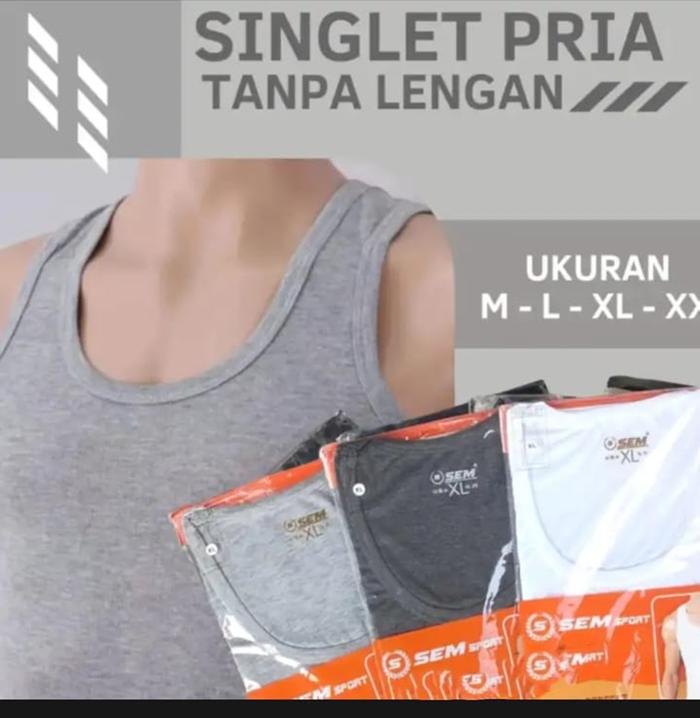 1 PCS KOAS DALAM SINGLET SEM SPORT - KAOS DALAM / KUTANG POLOS PRIA - PUTIH, M