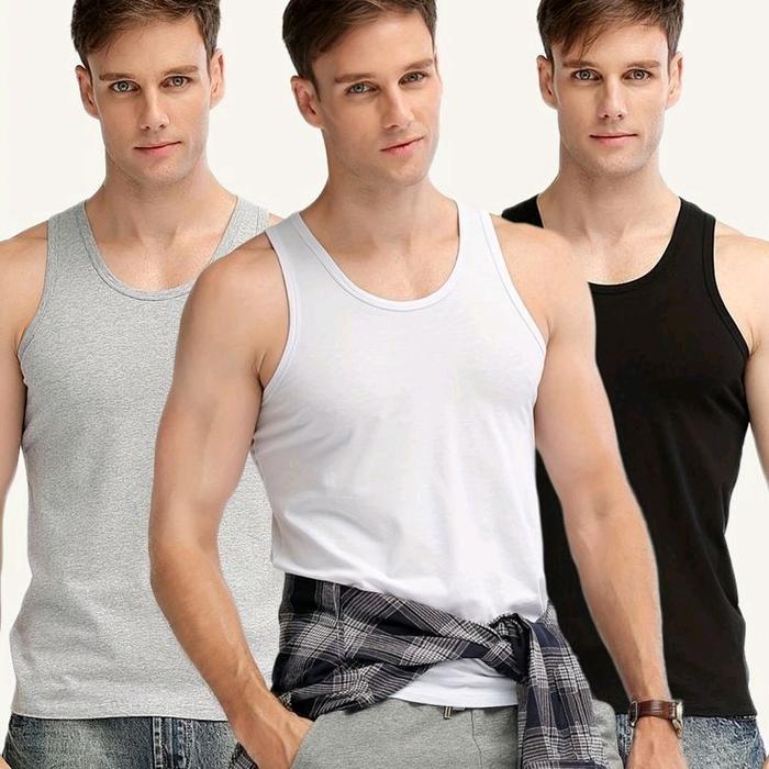 PROMO 3 PCS SINGLET PRIA DEWASA | SINGLET PRIA POLOS KAOS DALAM PRIA OBLONG KATUN KEREN HITAM TANKTOP PUTIH ATASAN BAHAN