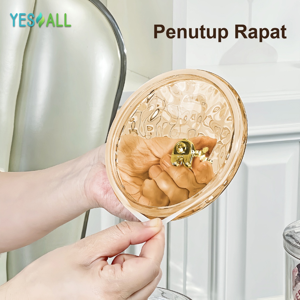 YESALL Toples Aesthetic Amber Gold – Beruang Bulat, Tutup Rapat, Kapasitas Besar, Tempat Snack / Kopi / Bumbu