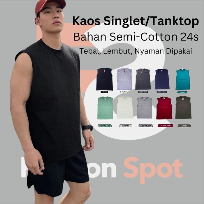 [TEBAL] SINGLET PRIA DEWASA POLOS TANKTOP KAOS DALAM SEMI-COTTON 24S NYAMAN ADEM LEMBUT - HITAM, L
