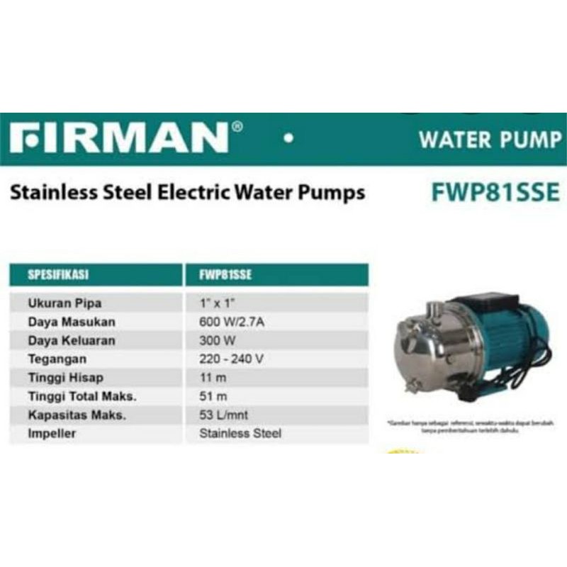 Pompa Firman FWP 81SSE Stainless Mesin Pompa Air Depot Isi Ulang Aqua RO