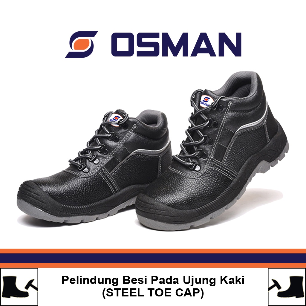 Sepatu Safety Boots Pria OSMAN Sepatu Safety Shoes Mid Cut Sepatu Safety Ujung Besi Tipe OS-703 Sepatu Kerja Outdor