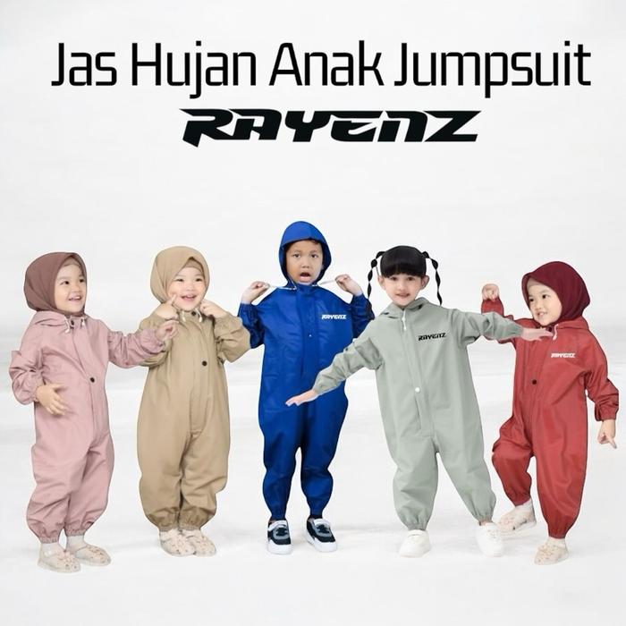 Jas Hujan Anak Jumpsuit/ APD dari RAYENZ bahan PVC Tebal Elastis Anti Rembes - Biru S