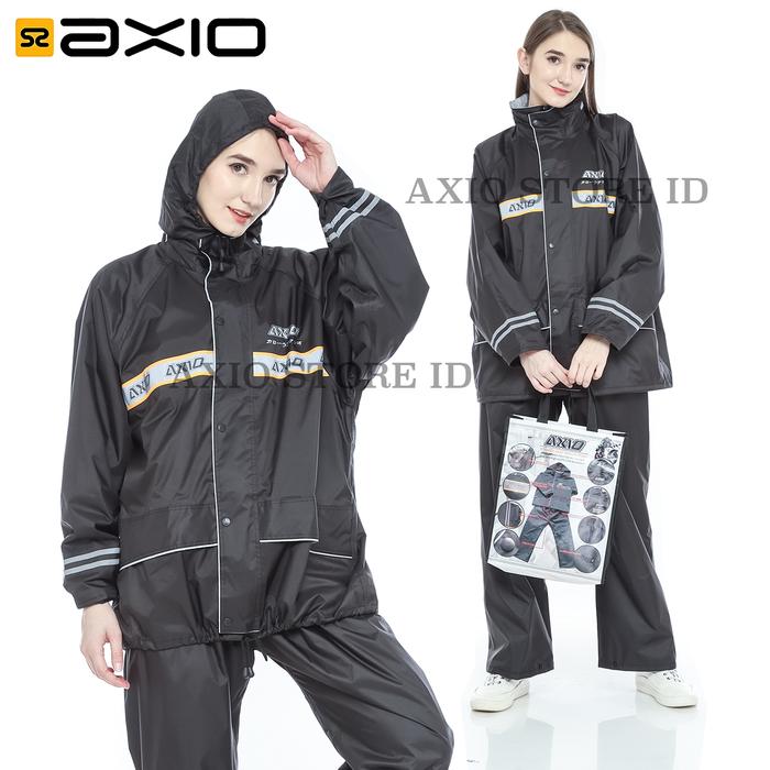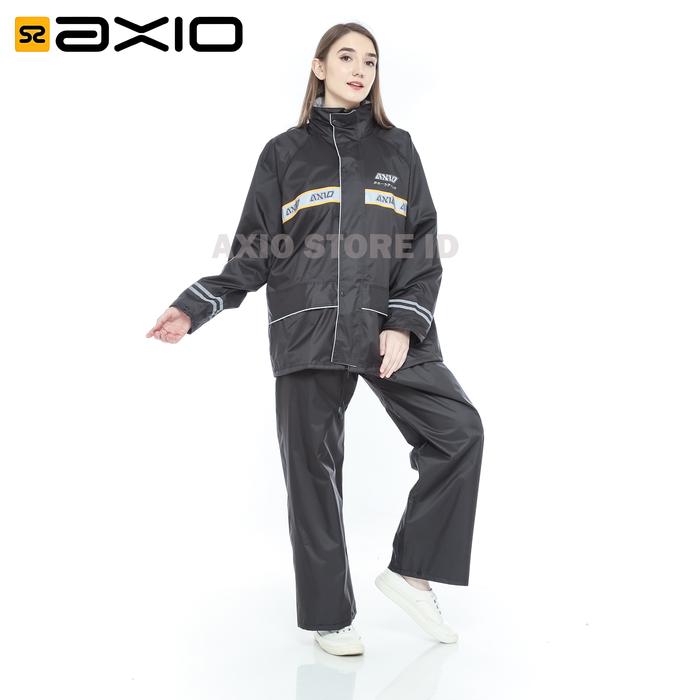 Jas Hujan Axio Wanita Hitam Waterproof Silver Series dengan Scotlight Silver Tulisan Axio - M