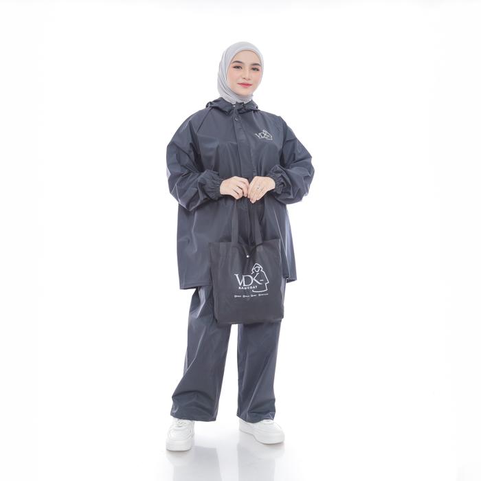 Jas Hujan SETELAN Raincoat Dewasa Pria dan Wanita Original Setelan Baju Celana Waterproof Aesthetic PVC 025 - Cream L