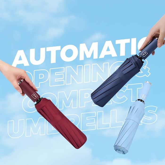 MIISOO Payung Lipat Umbrella Otomatis Jumbo Polos Anti UV Payung Gagang - Jumbo Hitam
