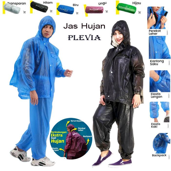 Jas Hujan Plevia 7001 Setelan Jaket Celana/Mantel Mantol Ujan Stelan Backpack Transparan - Hijau
