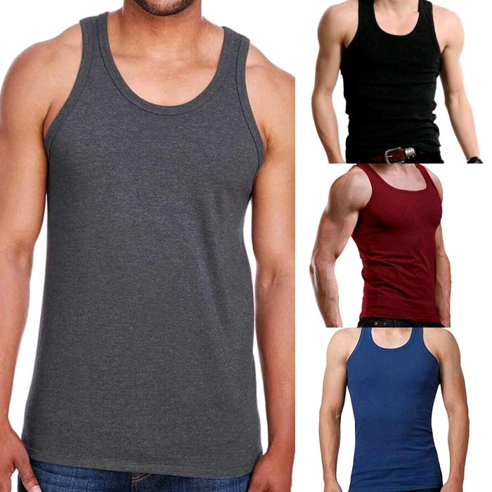 PAKET HEMAT 4 PCS KAOS SINGLET PRIA / KAOS OLAHRAGA SINGLET GYM / KAOS DALAM PRIA / SINGLET PRIA DEWASA - 2 PCS, HITAM +