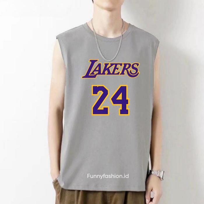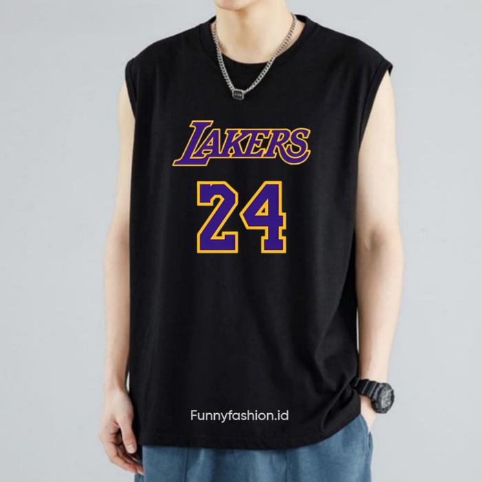 SINGLET PRIA LAKERS 24 DEWASA - OUTFIT PRIA KEKINIAN - SINGLET TANPA LENGAN KEREN - HITAM, S