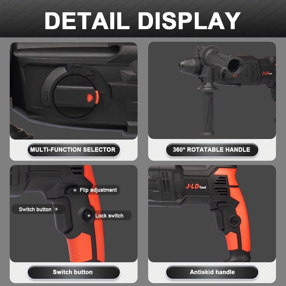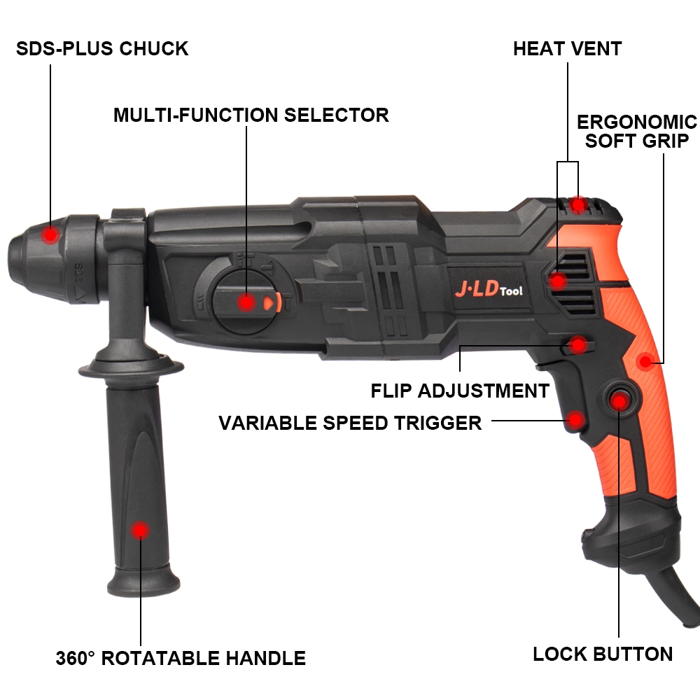 JLD Mesin Bor Bobok SDS Plus Rotary Hammer Drill 3 Mode Mesin Jack Hammer Drill Bobok beton besi kayu tembok Bisa bolak-