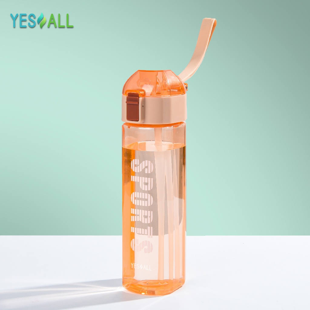 YESALL 650ml Botol Minum Transparan - Tutup Flip Thumbler Warna Transparan Infuse Water Bottle Infuser Olahraga SH004