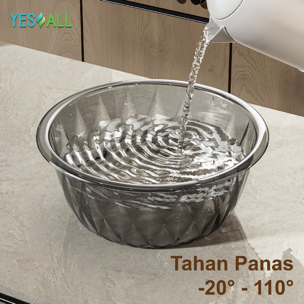 YESALL Baskom Plastik Estetik Food Grade – Baskom Dapur Tebal Serbaguna Tahan Panas -20℃110℃|Baskom Sayur Buah Daging 3 Ukuran 3 Warna