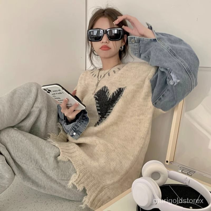 SWEATER RAJUT MOTIF HEART LOVE TEBAL AESTHETIC/RAJUT OVERSIZE/KNITWEAR WANITA/SWETER LENGAN PANJANG TAMBAL SULAM DENIM