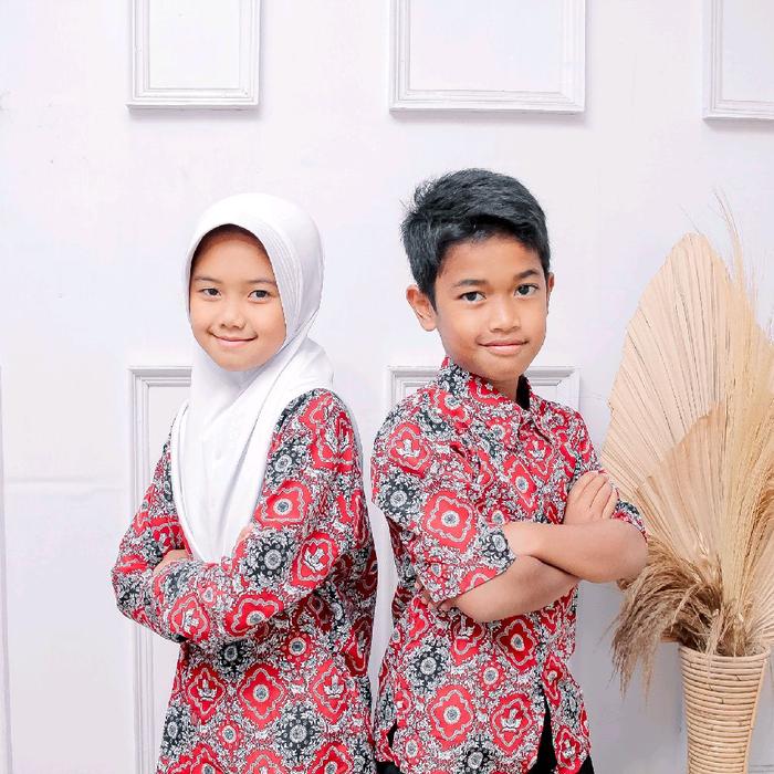 BAJU ATASAN KAMEJA MOTIF BATIK COWOK DAN WANITA SERAGAM SD TERMURAH TANGAN PENDEK DAN TANGAN PANJANG BATIK NASIONAL SERAGAM SEKOLAH - TANGAN PENDEK, S