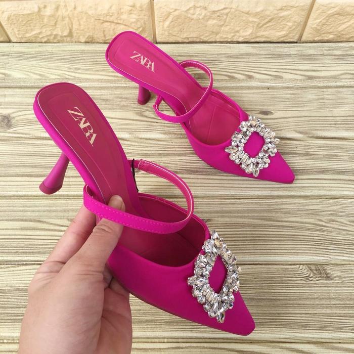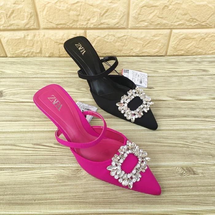 SEPATU HEELS WANITA 7CM ZS 180 SEPATU WANITA SEPATU HEEL WANITA IMPORT - BLACK, 35