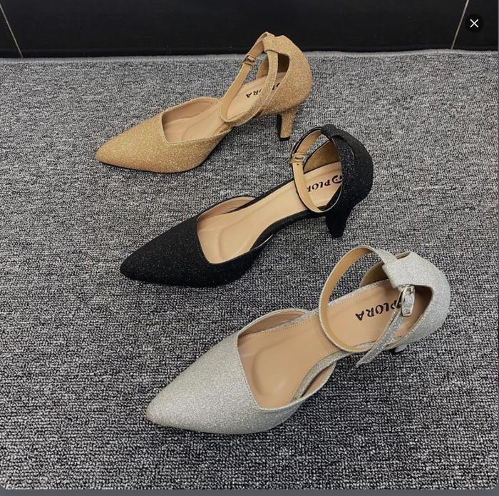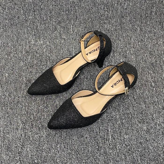 FLOW.RA - YUNA SEPATU WANITA MULES 5 CM SEPATU WEDING WANITA TERBARU PESTA SHOES - HITAM, 36