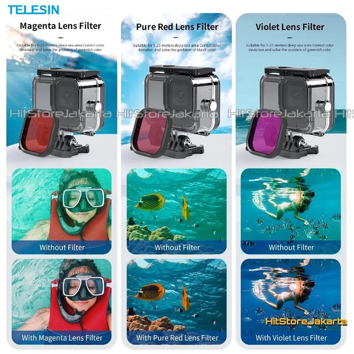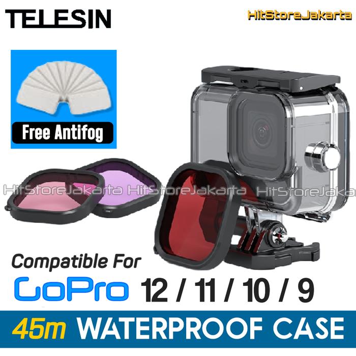 TELESIN WATERPROOF CASE FOR GOPRO 13 12 10 11 9 DIVE HOUSING FILTER UNDERWATER - WATERPROOF CASE