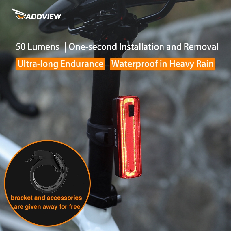 ADDVIEW 50L Bike Taillight - Auto Brake Sensor & Rainproof for MTB/Road Bikes, Night Safety ()