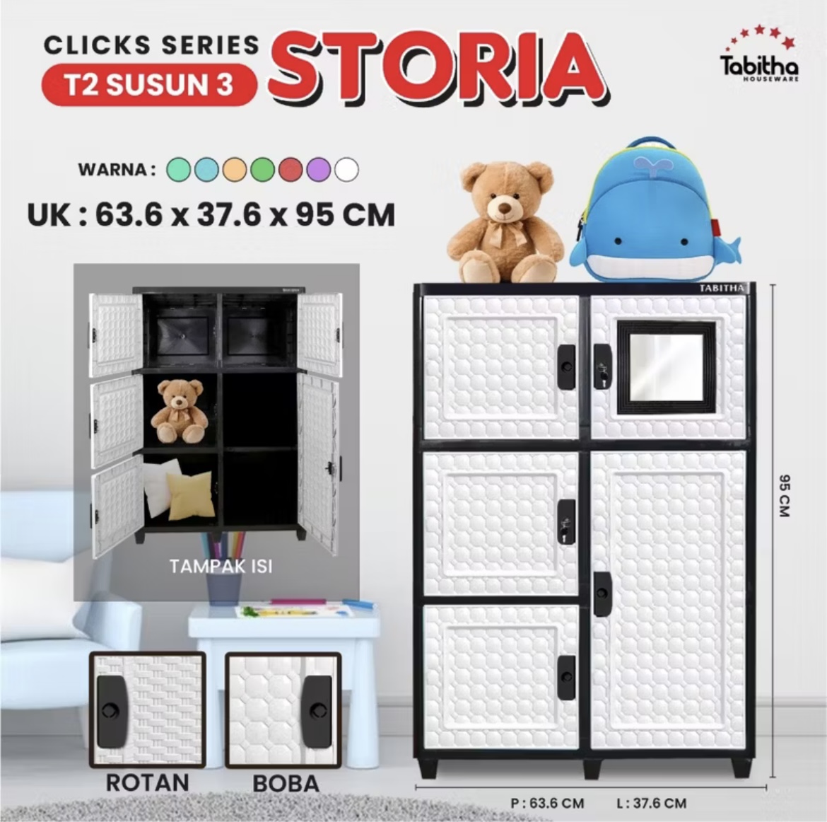 LEMARI PLASTIK TABITHA STORIA LEMARI PAKAIAN KUNCI KACA PUTIH 4 SUSUN JUMBO LEMARI PLASTIK BERKUALITAS