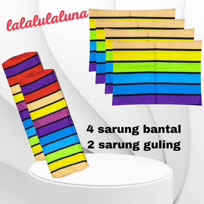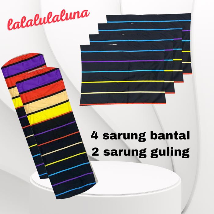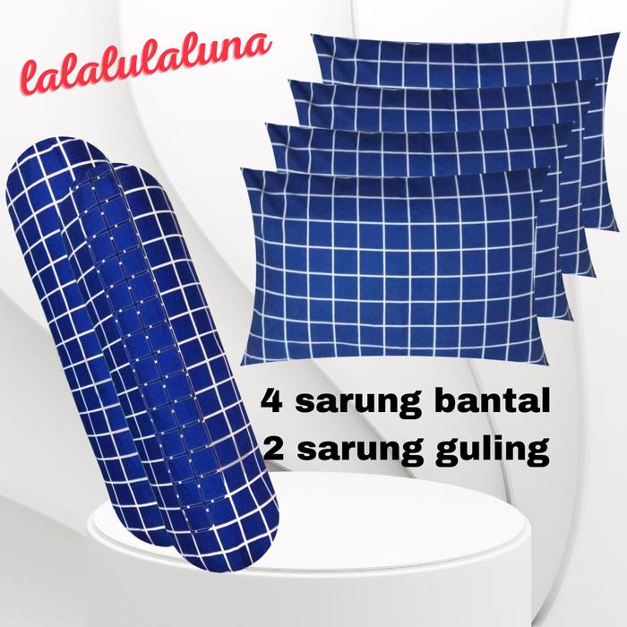 SATU PAKET ISI 6PCS 4 SARUNG BANTAL DAN 2 SARUNG GULING MOTIF AESTHETIC KOREA KOTAK-KOTAK HITAM KATUN - KOTAK HITAM, 4 SARBAN 2 SARGUL