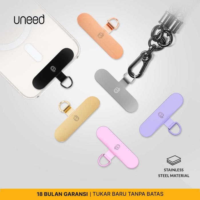 Uneed Stainless Steel Phone Lanyard Gasket / Patch / Clip / Strap Tali Gantung Hp - UST203 - STEEL BLACK