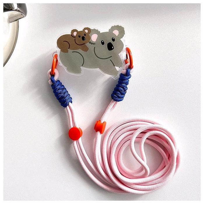 (007)tali lanyard motip hewan lucu model clip holder bisa untuk semua type hp Ponsel holder - kucing pink tua
