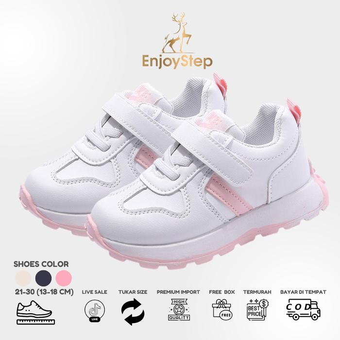 Enjoystep - Sepatu Anak Sepatu Sneakers Anak Import Premium Quality S163 Fashion - PINK Size 21 = 13 CM