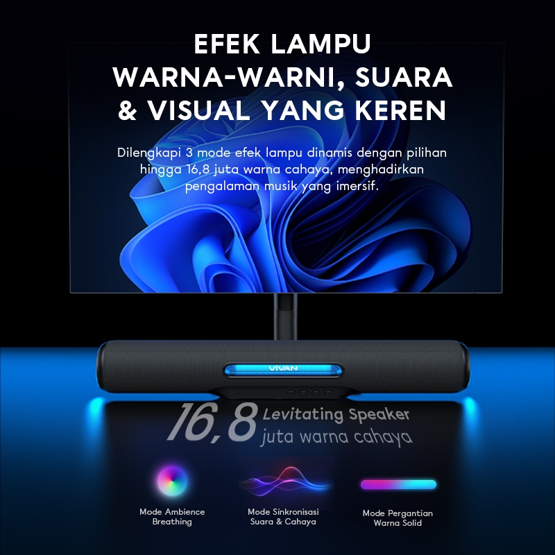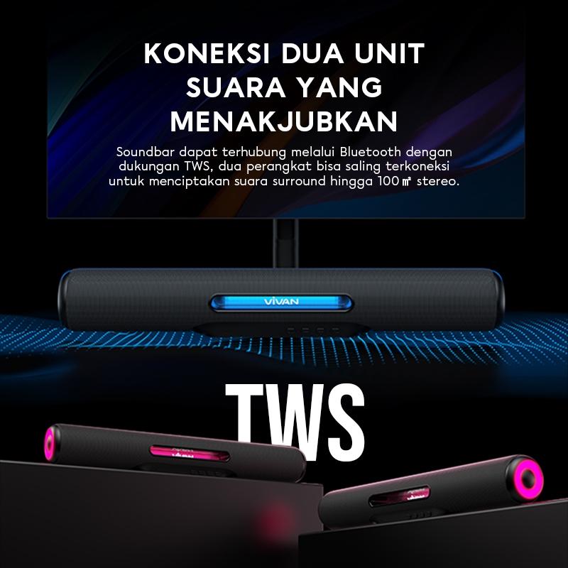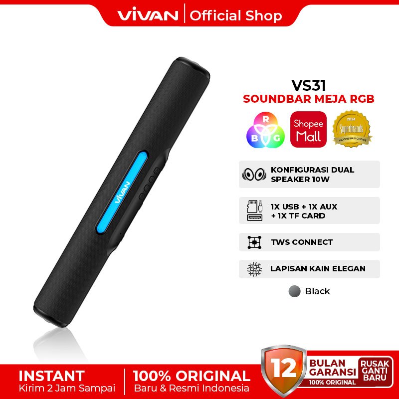 VIVAN Bluetooth Soundbar TV Super Bass RGB LED Lampu TWS Interkoneksi 4 Mode Playback VS31 Garansi 12 Bulan