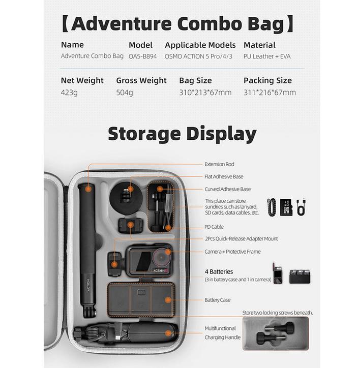 SUNNYLIFE PORTABLE CARRYING CASE COMBO BAG TAS DJI OSMO ACTION 5 PRO /4/3 - STANDAR, HITAM