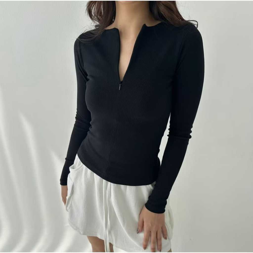 EVONNE Zipper Casual Knit Top - Long Sleeve - Baju Lengan Panjang Wanita Knit Top Blouse