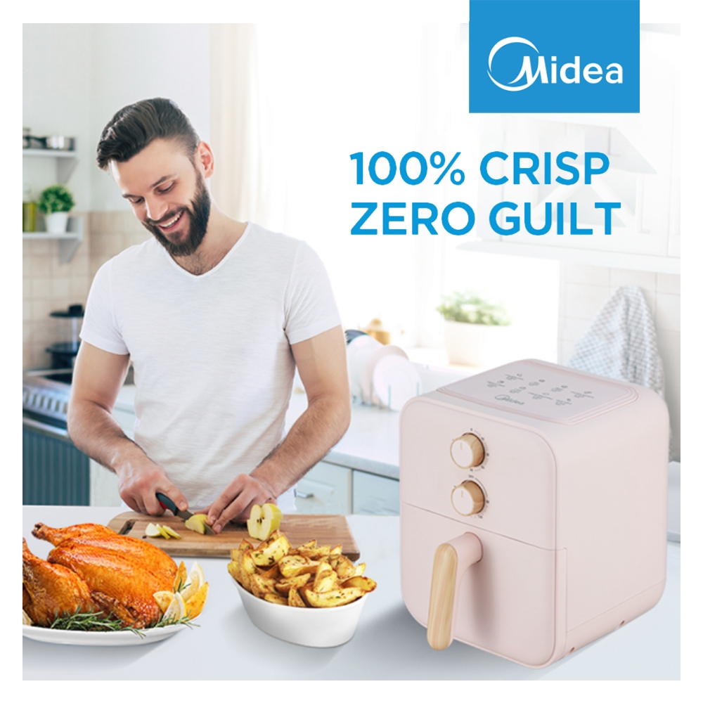 [Star] Midea Air Fryer 4L 650W Low Watt MAF400B0ADI Penggorengan Tanpa Minyak Knob Design Pink