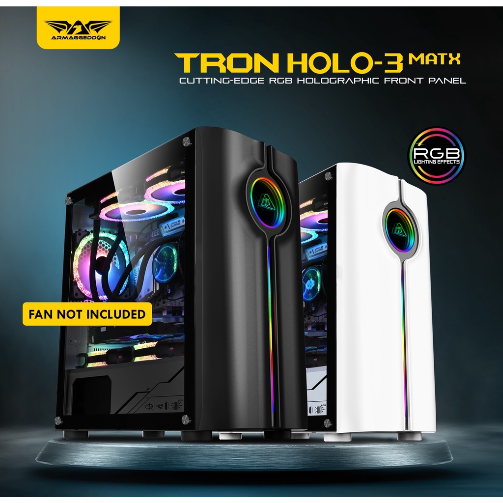 Casing PC Gaming Armaggeddon Tron Holo 3 Mini ATX - Micro ATX | RGB Holographic Front Panel