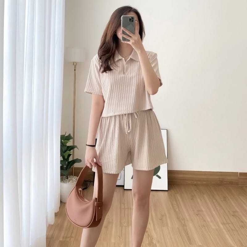 Shamela Fashion - SIERA SETELAN CROP ONESET HORNET WANITA PREMIUM TERMURAH KNIT ONE SET