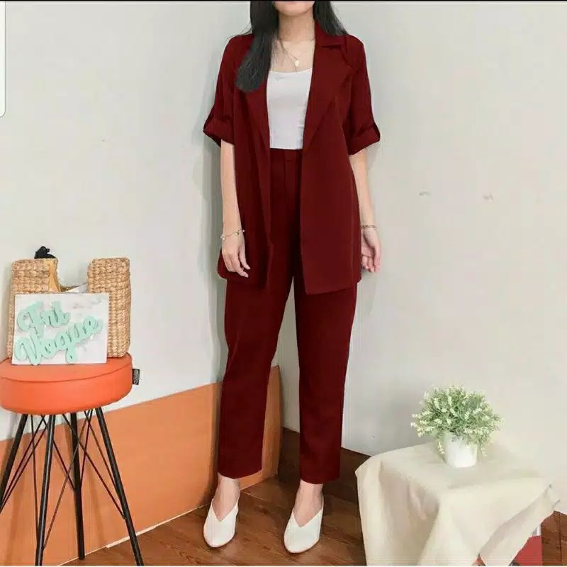 MESYA ONE SET 2IN1 /STELAN WANITA KOREAN STYLE BLAZER DAN CELANA