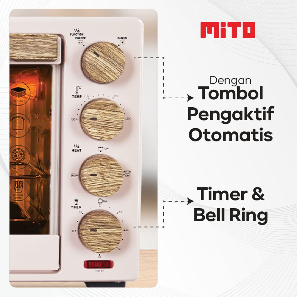 [Star] MITO Electric Oven MO999 T0P WOOD SERIES 28L Original Pink Pemanggang Kue dan Makanan