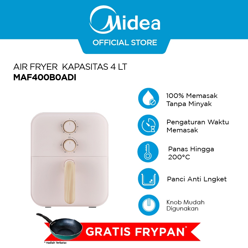 [Star] [GRATIS FRY PAN] Air Fryer Midea 4L MAF400B0ADI Low Watt – Tanpa Minyak, Anti Lengket & Hemat Listrik | Sistem Pemanas 360° Matang Merata & Garansi Resmi