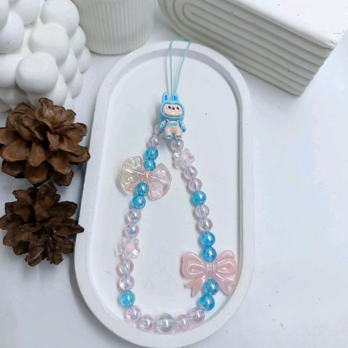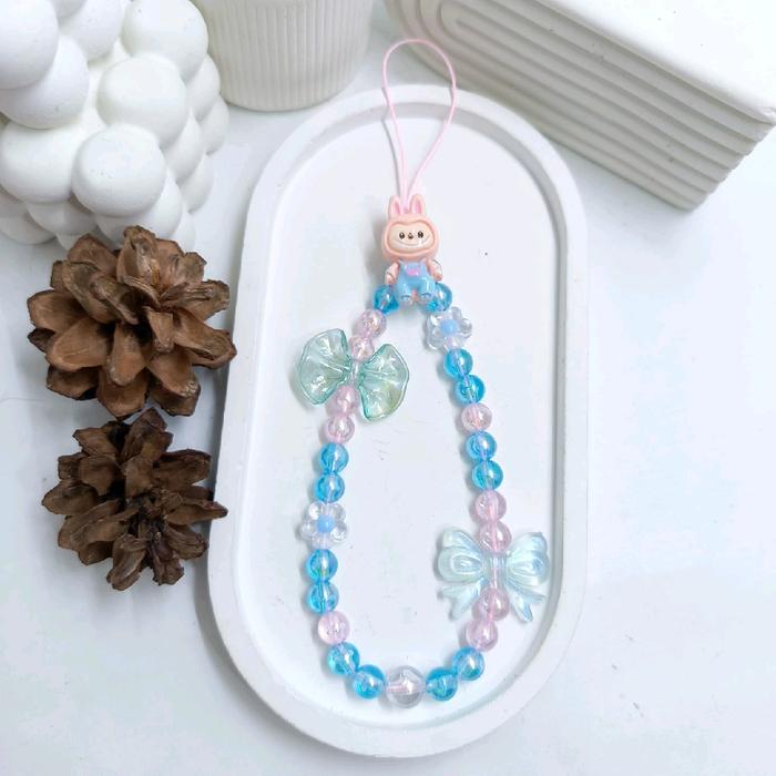 Strap Phone Labubu Tali Gantungan HP Karakter Labubu Strap HP Lanyard Aksesoris - Ungu putih