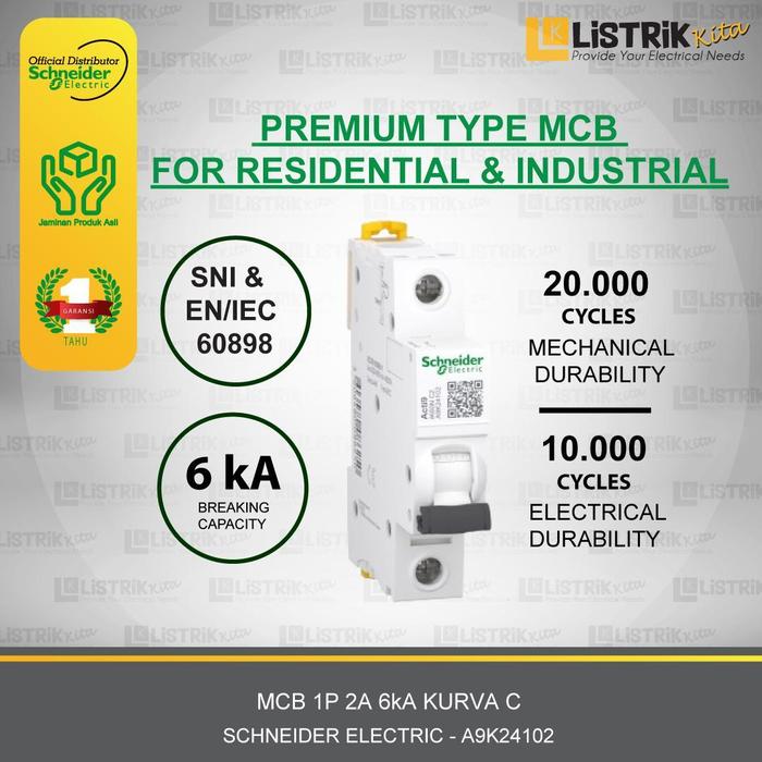 MCB SCHNEIDER ELECTRIC ACTI9 iK60N 1P 2A/4A/6A/10A/16A/20A/25A/32A/40A 6kA Kurva C-A9K241**/A9K271** - 1P 2A