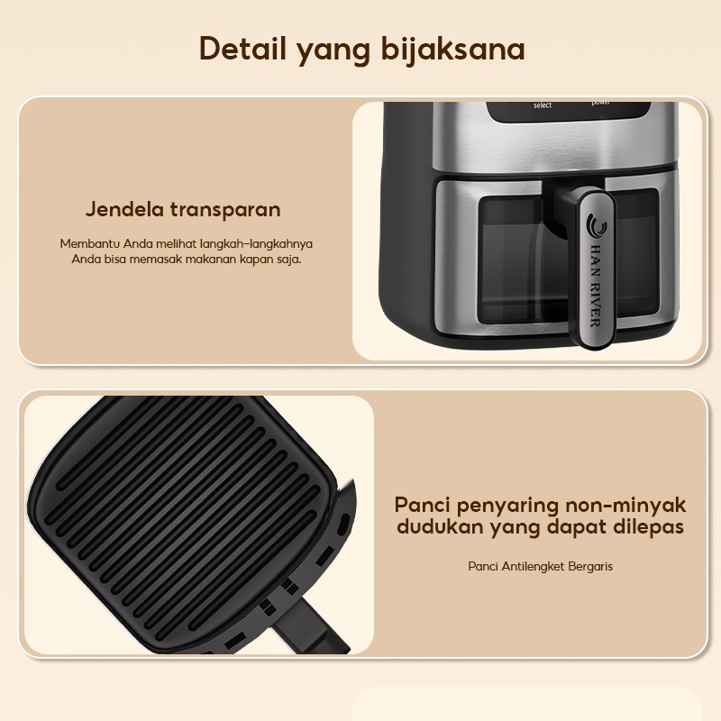 [Star] Air Fryer Touch screen Digital 8L kapasitas besar 650W Low Watt Penggoreng Makanan Serbaguna