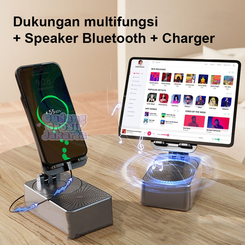 Stand HP 3in1 Speaker Bluetooth+PowerBank 10.000mAh+Holder Lipat Portable Charger & Audio Praktis