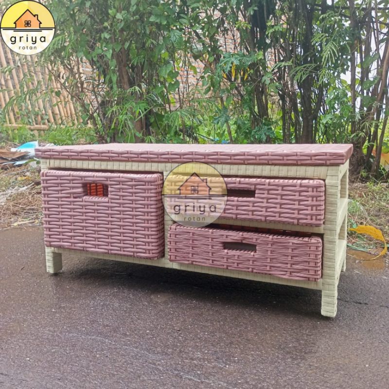 Meja Tv Rotan Sintetis Minimalis Retro Vintage