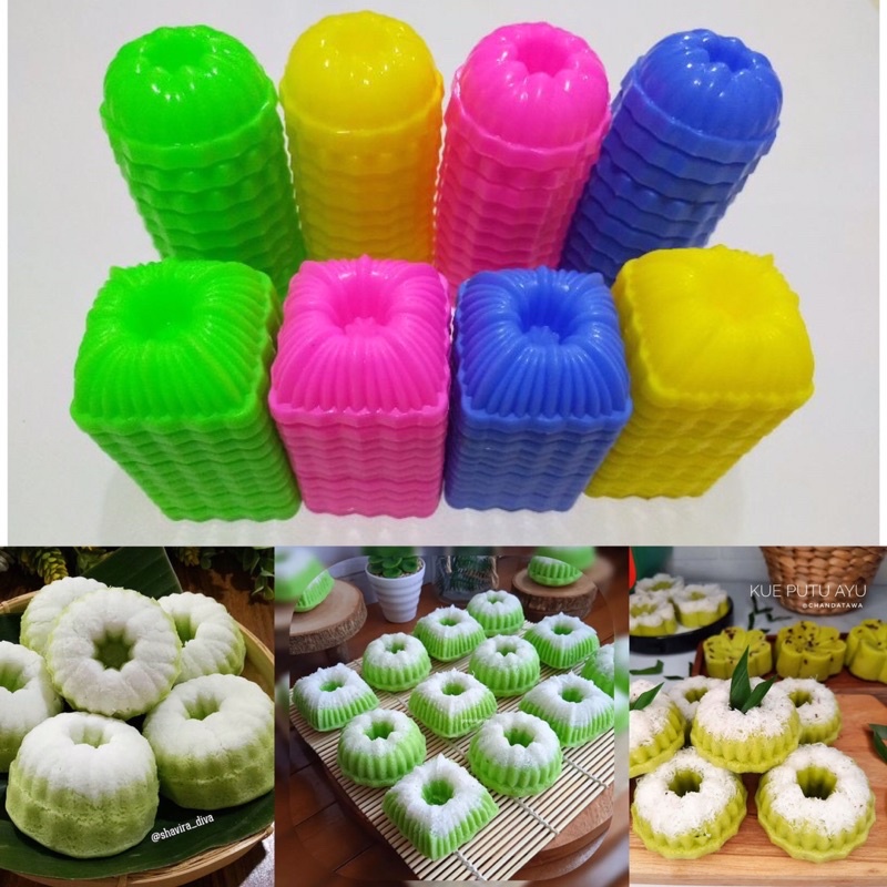 PROMO 12 Pcs Cetakan Kue Putu Ayu Plastik Bulat Kotak 1 Lusin Murah Cetak Kue Jadul Putri Ayu Cetakan Puding Agar Agar J