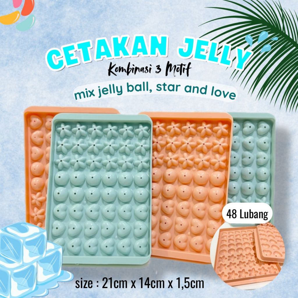 PROMO AZ CETAKAN JELLY KOMBINASI MIX 3 MOTIF CETAKAN PUDING ES BATU 48 LUBANG BINTANG LOVE BULAT