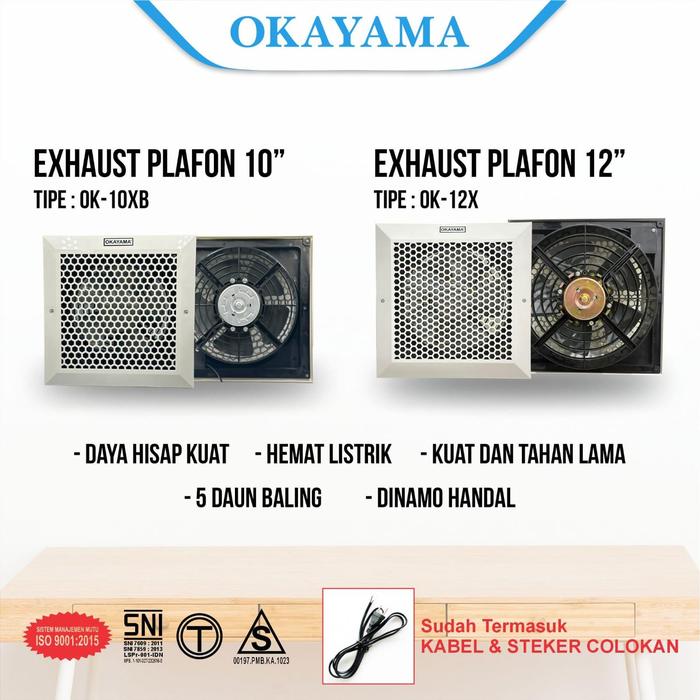 Kipas Angin Exhaust Fan/ Hexos Plafon OKAYAMA 12 IN - OK12X penyedot udara ruangan biar tidak panas - 12X+COLOKAN