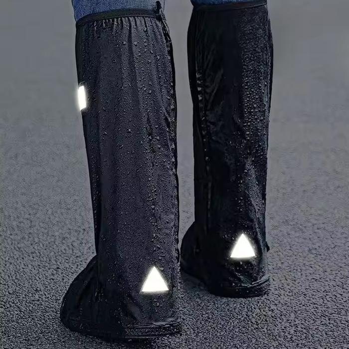 Sarung Cover Sepatu Hujan Rhodey Mantel Zipper PVC Karet Anti Air Reflektor Size S M L XL - S BK H-212